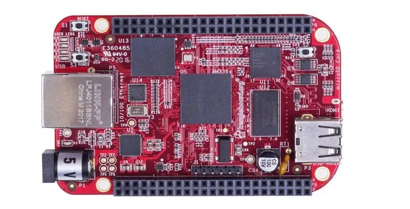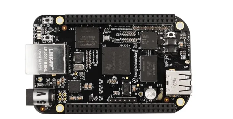 BeagleBone Black 是一款基于 TI 公司 AM3358 处理器的开发套件,处理器集成了高达 1GHz 的 ARM Cortex™ A8 内核,并提供了丰富的外设接口,包括网口、USB Host、USB OTG、TF卡接口、串口、JTAG接口(默认不焊)、HDMI D Type 接口、eMMC、ADC、I2C、SPI 、PWM 和 LCD 接口。