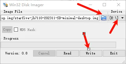 下载并打开Win32DiskImager, 将解压后的img镜像烧录进TF卡: Win32DiskImager