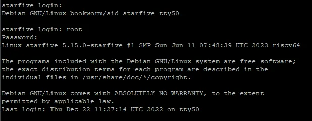Root用户账号密码:账号: root密码: starfive-普通用户账号密码:'账号: user密码: starfive