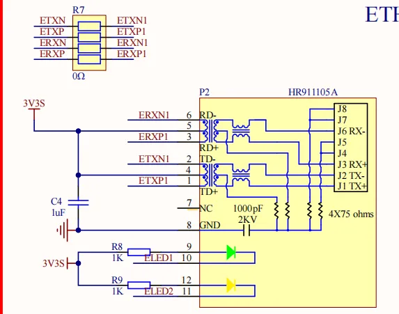 因为我有一个沁恒的板子,板���的rj45单独引出了引脚