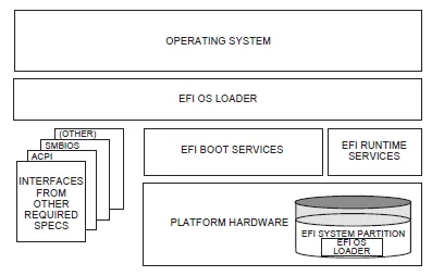 UEFI通过规范定义了一整套完整的标准化接口和服务,对上屏蔽硬件细节;在硬件平台发生变更后,通过UEFI固件提供服务,确保操作系统不受影响。