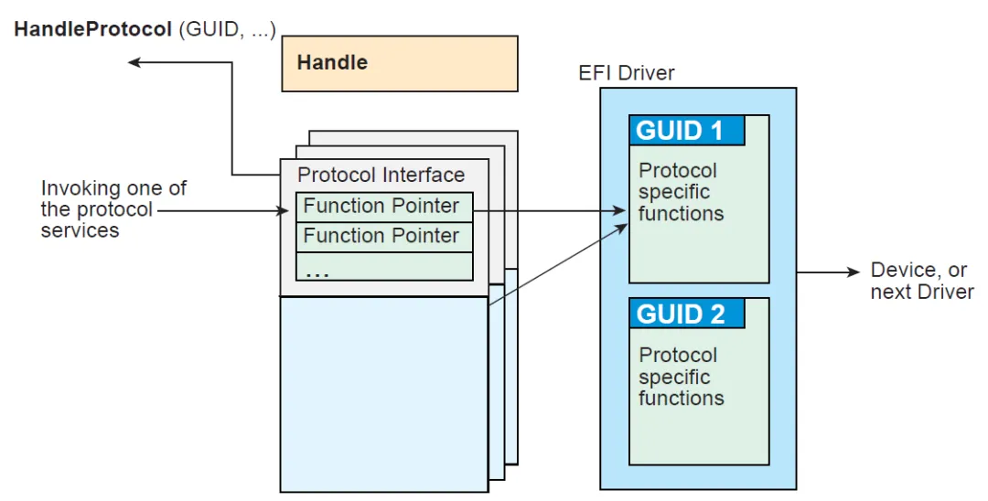 Protocol(协议) 是 UEFI中的一个核心概念,用于定义驱动程序、应用程序和固件之间的交互接口,通过 Protocol,UEFI 能够实现模块化设计和动态绑定,提供强大的硬件管理和扩展能力。