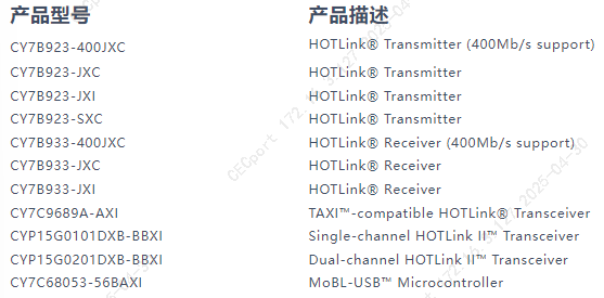 基于市场需求,罗彻斯特电子与Infineon扩展了之前对Cypress HOTLink®和HOTLINK II™ 产品的支持,并新增了一款广泛使用的USB微控制器。