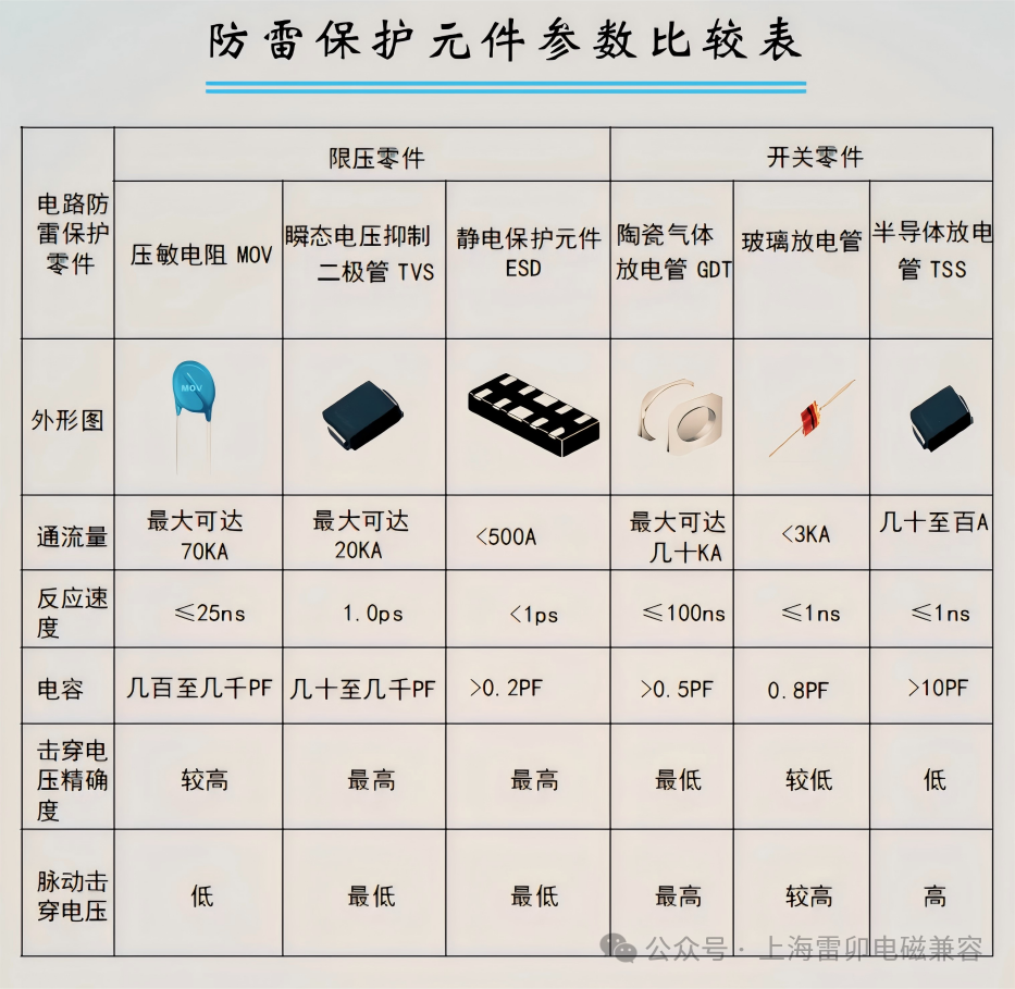 雷卯电子胡工在分享中详细对比了多种防雷保护元件的性能参数(参考下表),帮助开发者精准匹配需求: