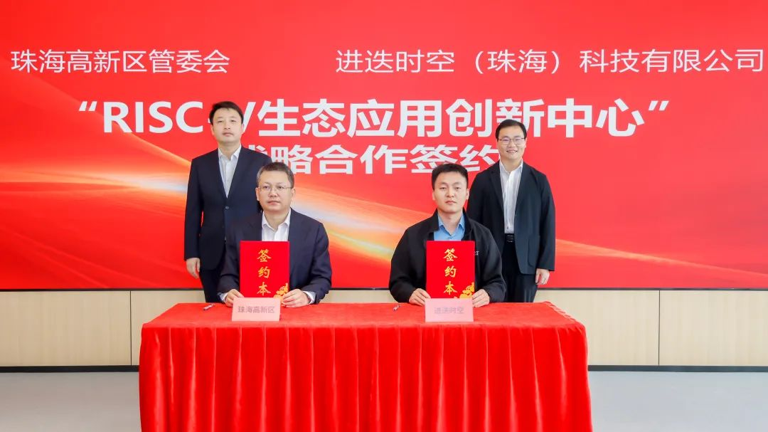仪式上,珠海高新区管委会与进迭时空(珠海)科技有限公司签订“RISC-V生态应用创新中心”战略合作协议,珠海市高新建设投资有限公司与进迭时空(珠海)科技有限公司签订项目入驻协议。