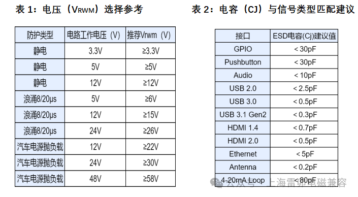 · 寄生电容(CJ):高频信号线路(如USB 3.0)需CJ<0.5pF。