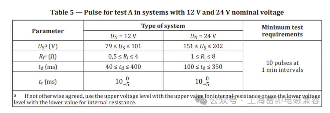 和工业电源不同的是,汽车电源波动更大,测试标准更严苛,需要过ISO 7637-2/ ISO 16750-2标准中的系列测试,此标准中最为严苛的为Pulse 5A波形和参数如上。