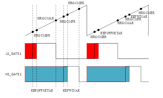 ④本单元计数值等于周期值或者锯齿波硬件清零到偏移值EEFOFFSETAR(或窗口值EEFWINAR)的时间