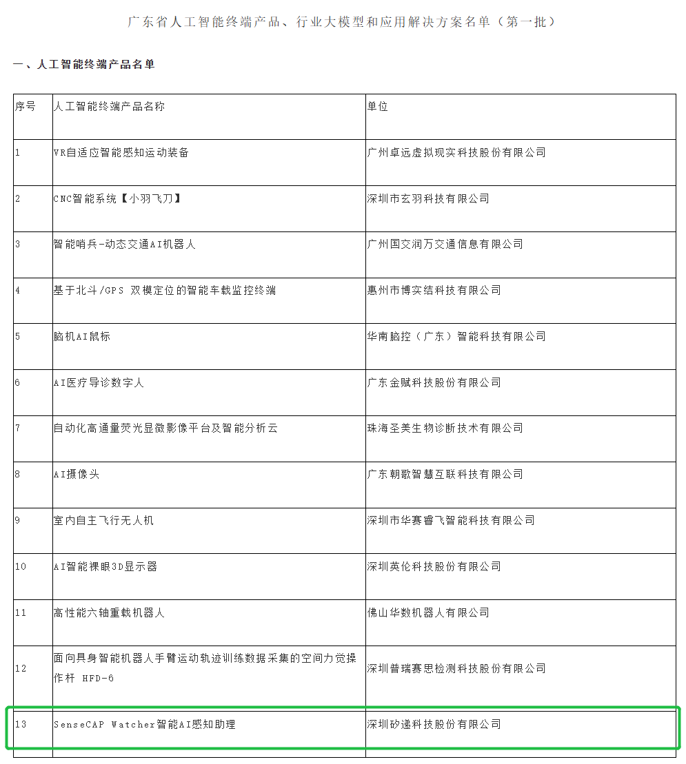 矽递科技的SenseCAP Watcher智能AI感知助理成功入选了广东省人工智能终端产品名单!