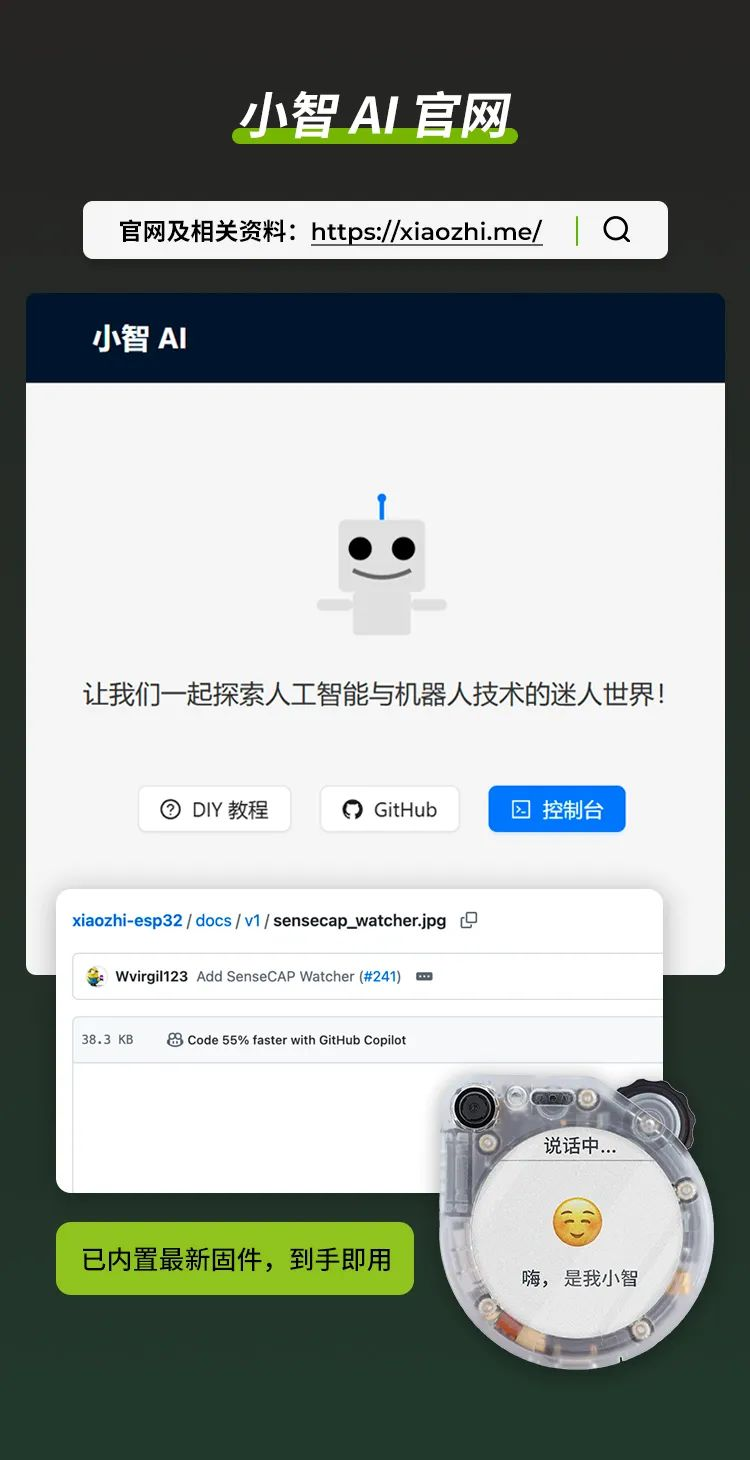 今年还推出了SenseCAP Watcher小智固件版本,无需组装,开机连接WiFi之后即可使用语音互动功能,使用虾哥 小智AI机器人PRO,定制个人语音助手,支持实时通义千问、DeepSeek、豆包、通义千问MAX。