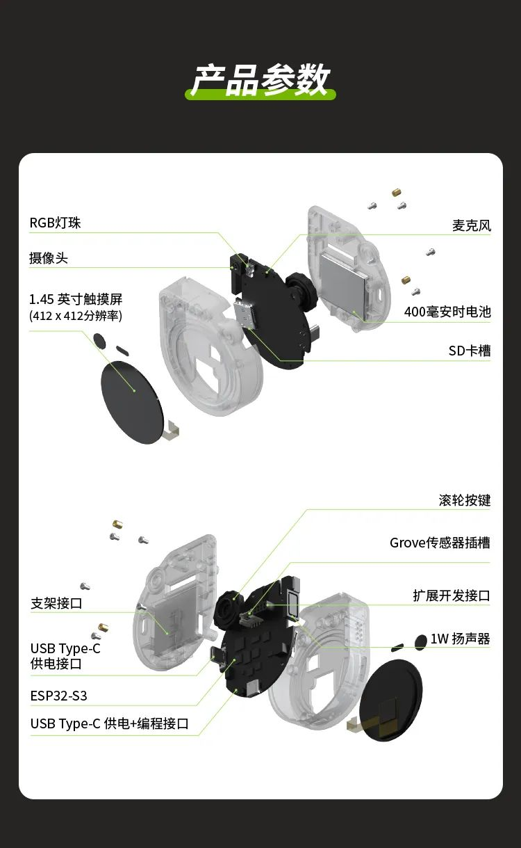 SenseCAP Watcher 智能AI感知助理采用 ESP32-S3 主控平台,集成 Himax WiseEye2 HX6538 AI 协处理器,该芯片搭载 Arm Cortex-M55 CPU 及 Ethos-U55 NPU,在图像处理与向量运算方面表现出色,可高效支持设备端 tinyML 推理任务。作为一款多模态感知终端,SenseCAP Watcher 集成视觉(摄像头)、听觉(麦克风)及语音交互(扬声器)功能模块,实现了完整的感知-交互能力闭环。结合支持大语言模型的 SenseCraft软件,该设备可精准解析用户指令,实时感知环境信息,并智能执行相应操作。