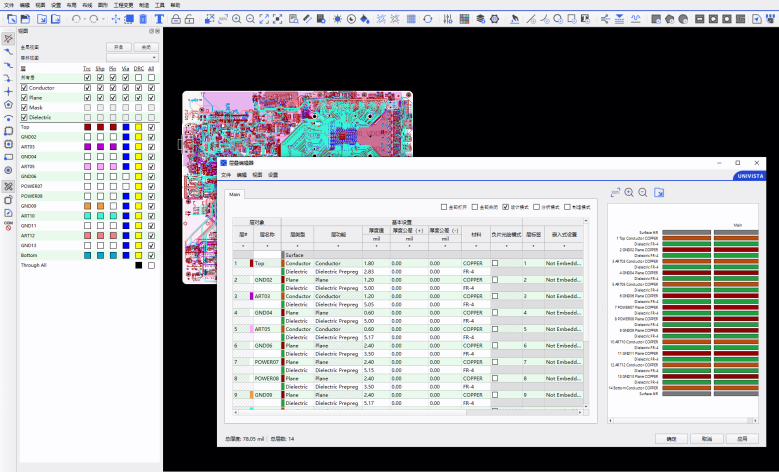 PCB层数不受限制,pin数高达百万规模。满足复杂大规模电子系统的设计需求,同时保证高性能与高可靠性功能。UniVista Archer PCB EDA软件拥有高效灵活的铜皮设计,简单易用的走线推挤功能,具有丰富的规则约束管理和严谨的DRC检查,支持电子系统设计全流程上完整的交换数据输入输出,支持输出经过验证的光绘生产数据和打孔数据等。