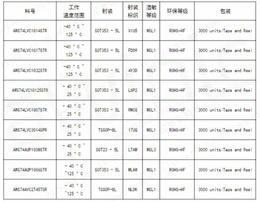 AWS74LVC1G14/17/32/125主要参数