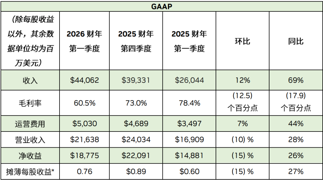 · 季度收入达 441 亿美元,较 2025 财年第四季度增长 12%,较去年同期增长 69%