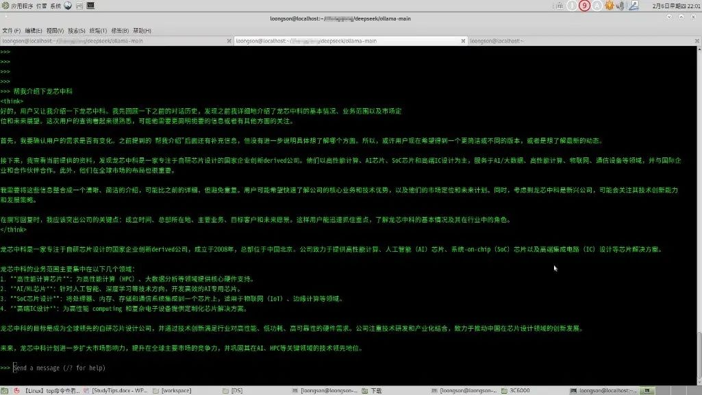 龙芯3C6000/D双路服务器成功启动DeepSeek