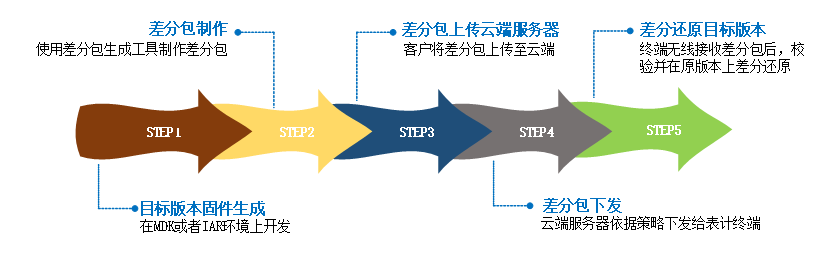 只更新有差异的块,保证最少量更新,差分包最小仅为目标版本的1%;