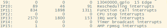 (5)Linux端运行以下命令能看到 RT-thread发给Linux的IPI中断: