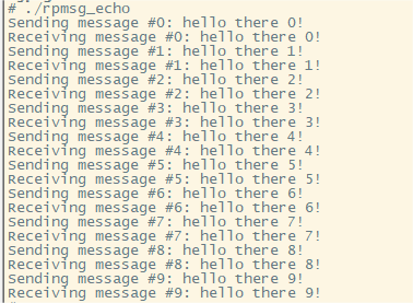 (3)上电启动:RT-Thread启动很快,并且运行rpmsg linux test的测试程序,RT-Thread在等待Linux端发送IPI中断,Linux端是Rpmsg的master,需要配置virtio queue的控制内存和共享内存。