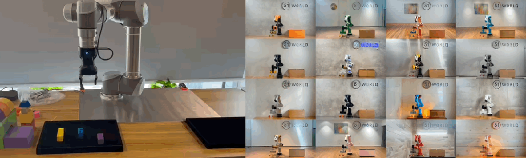 依托自研的 3DGS 混合引擎,51Sim 大幅提升了虚拟环境的视觉真实度和多样化,并大幅降低了重建成本。这些虚拟场景产生的合成数据,严格遵循真实世界的物理规律,包括光照变化、材质特性、碰撞反馈及物体间的动态交互。