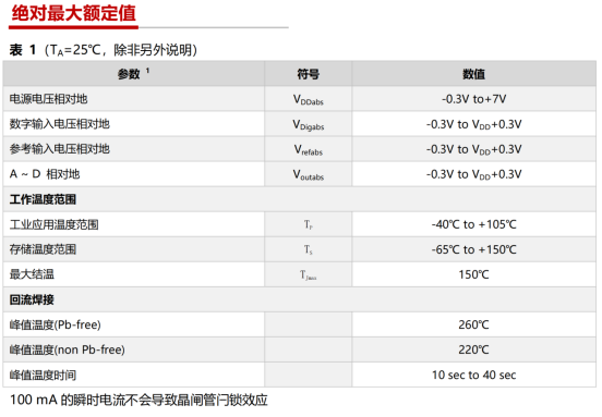 基准输入特性:基准输入电压范围0.25V~VDD,典型阻抗45kΩ,建议搭配外部缓冲器以优化宽温环境下的基准稳定性。