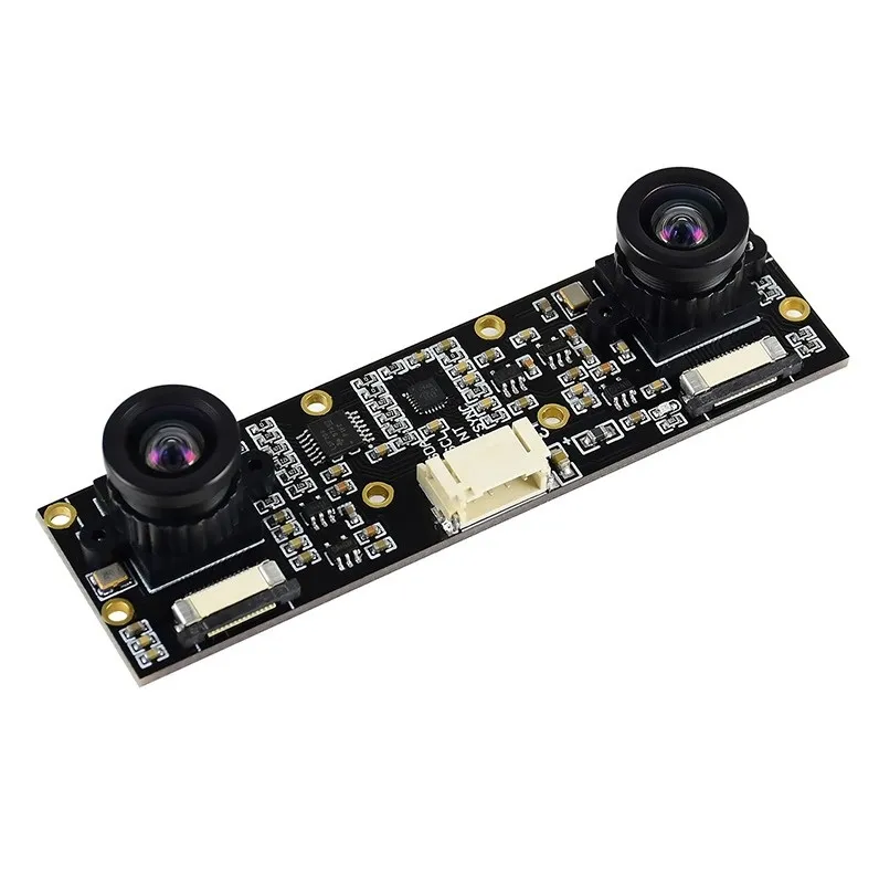 立体视觉:60mm基线长度,支持深度计算与物体识别,适配 SLAM、避障导航等AI视觉任务。