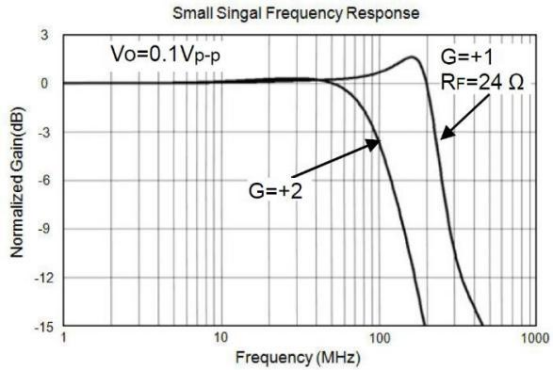 高带宽与高平坦度:在 G=+1 增益下,-3dB 带宽达 150MHz,增益带宽积达 250MHz;G=+2 增益下,0.1dB 平坦度带宽达 52MHz,确保 52MHz 以内的信号增益波动≤0.1dB,避免高频信号失真。
