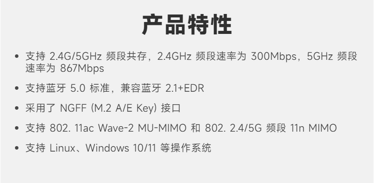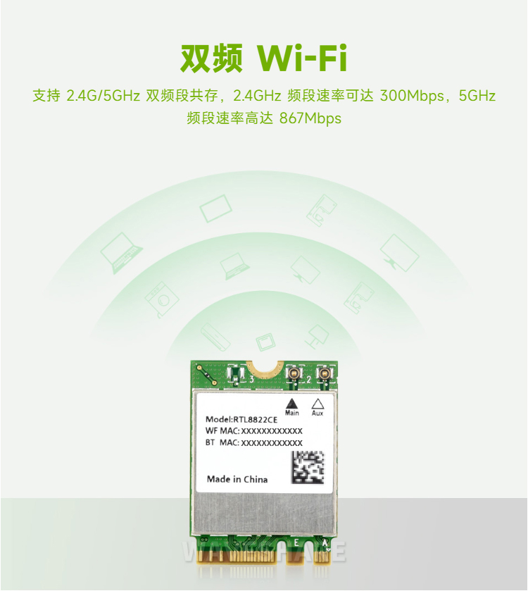 自营 RTL8822CE双频无线网卡 2.4G/5GHz频段共存