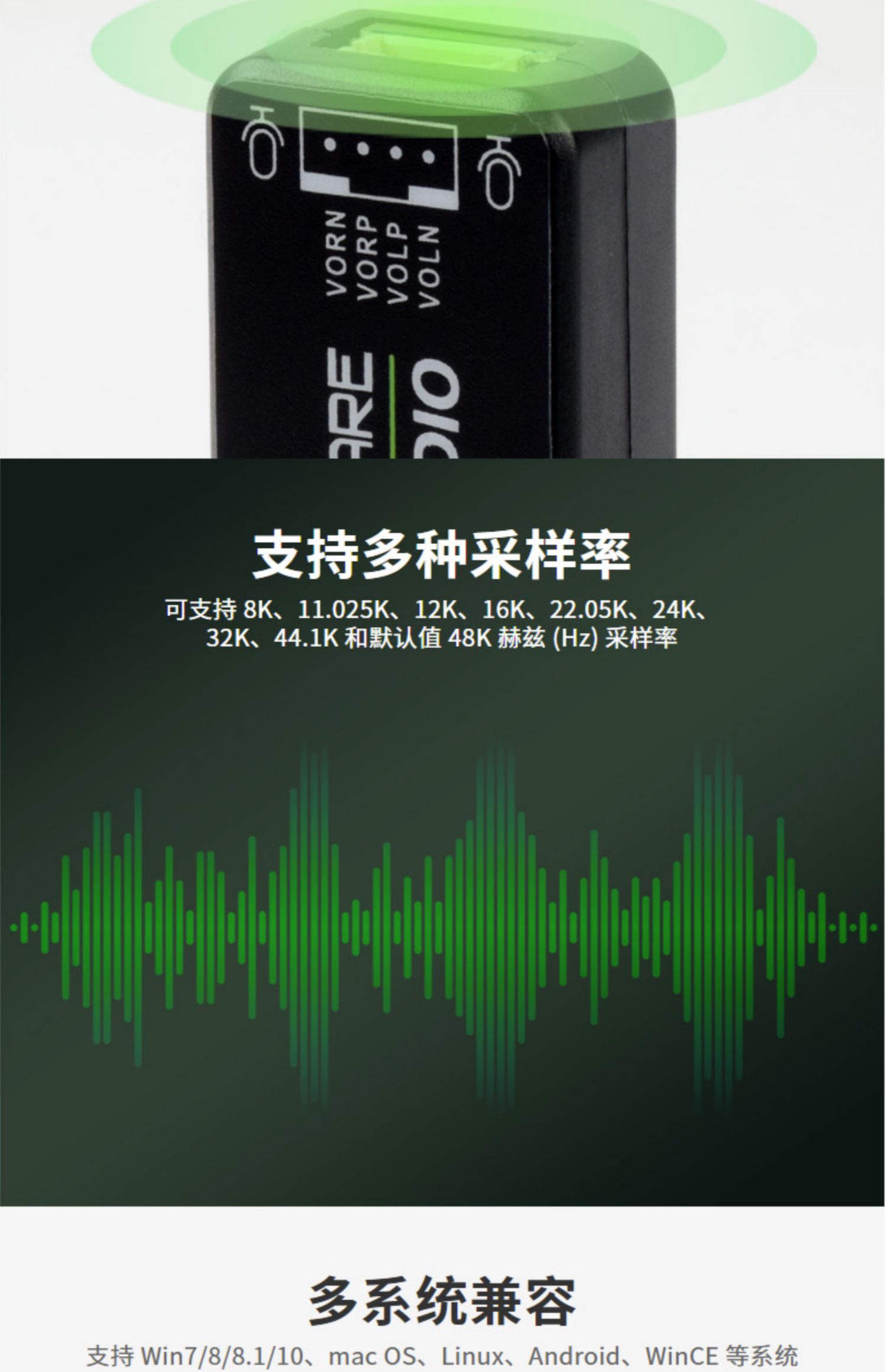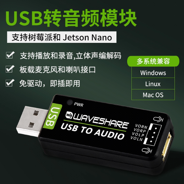 USB转音频模块免驱声卡 适用于树莓派/NVIDIA Jetson Nano/VisionFive2外接音频转换器,支持播放和录音,立体声编解码,多系统兼容