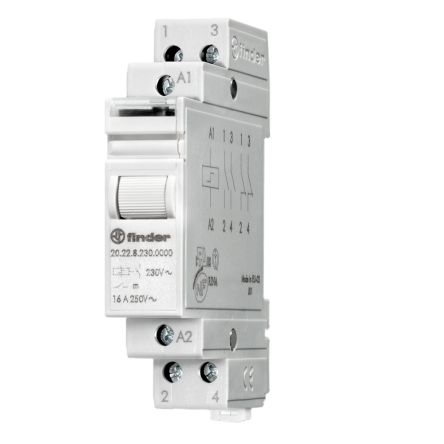 Finder 模块化步进继电器, 12V线圈, 16A切换, DPST, 1极, DIN导轨安装