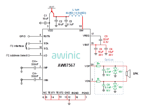 9.5V Smart Adaptive Boost High Efficiency Low Noise Large Volume Smart K Audio Amplifier