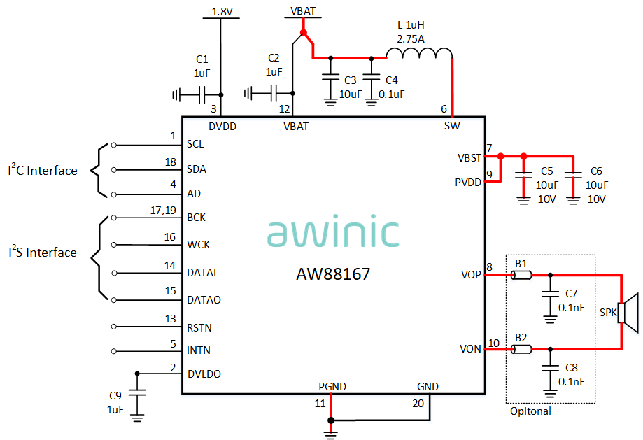 I2S/TDM Input, High Efficiency, 6V BOOST Digital Smart K Audio Amplifier with SKTune Algorithm