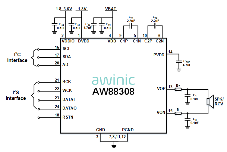 I2S/TDM Input, High Efficiency, 6V Charge Pump, Digital Smart K Audio Amplifier
