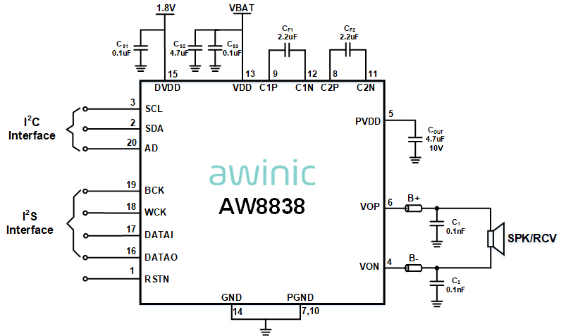 I2S Input, High Efficiency, 6V Charge Pump, Digital Smart K Audio Amplifier