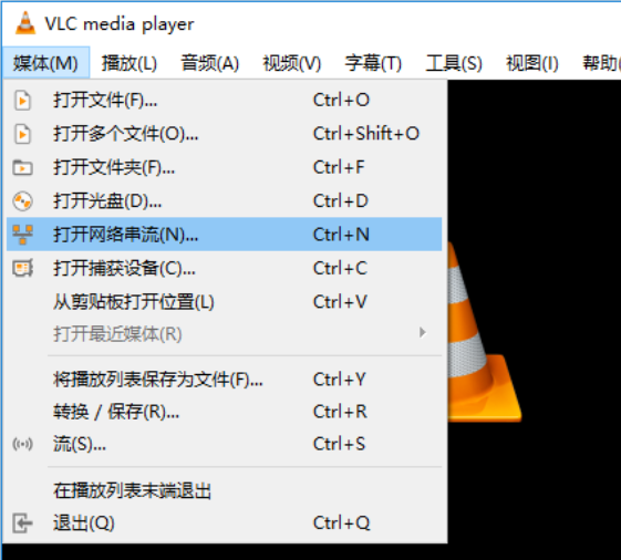在VLC media player的菜单栏【媒体】中打开网络串流