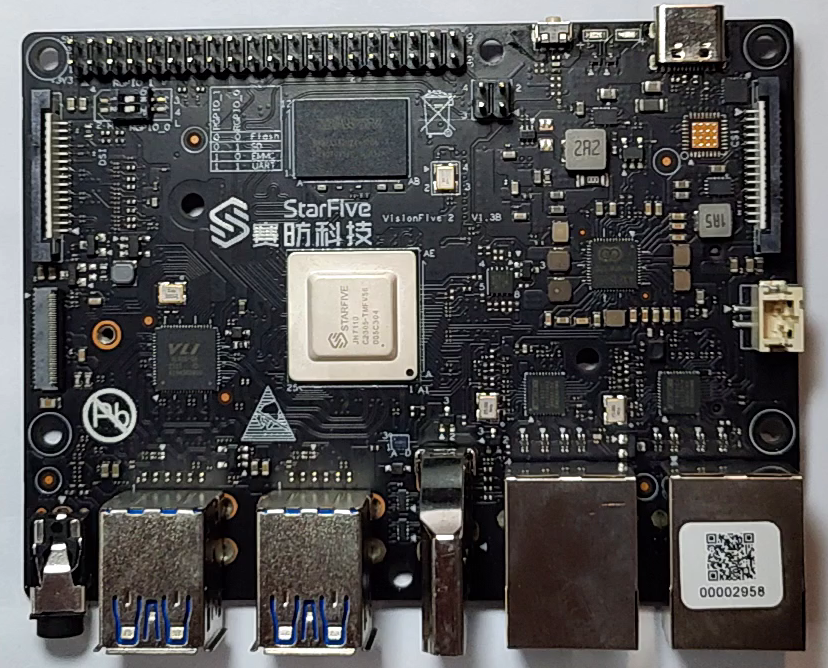 JH7110 是一款由赛昉科技 2022 年发布的基于 RISC-V 架构的多媒体应用处理器芯片,具有高性能、低功耗、高安全性的特点。JH7110 搭载 64 位高性能四核 RISC-V CPU(单核性能相当于Arm Cortex-A55)采用 28 nm 工艺,支持 Linux 操作系统,主频 1.5GHz,为全球首款量产的高性能多媒体 SoC 芯片平台。