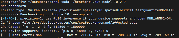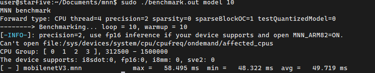 $ sudo ./benchmark.out ${MODEL_PATH} 10