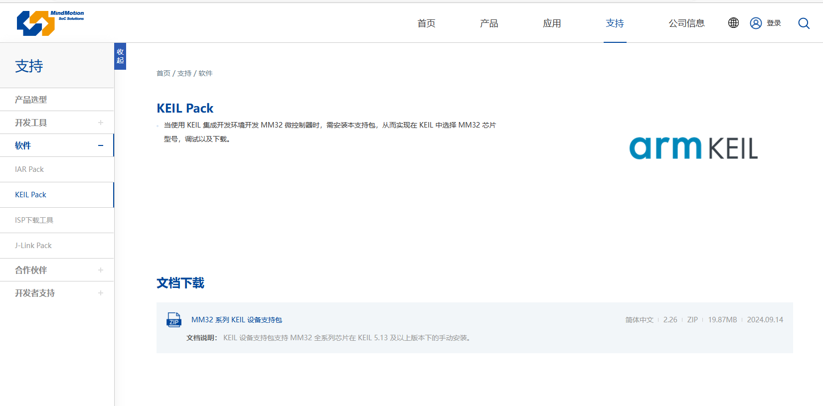 网页地址: https://www.mindmotion.com.cn/support/software/keil_pack/