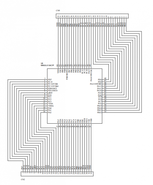 1、所有的io口全部引出来了,如图中的CN2和CN9: