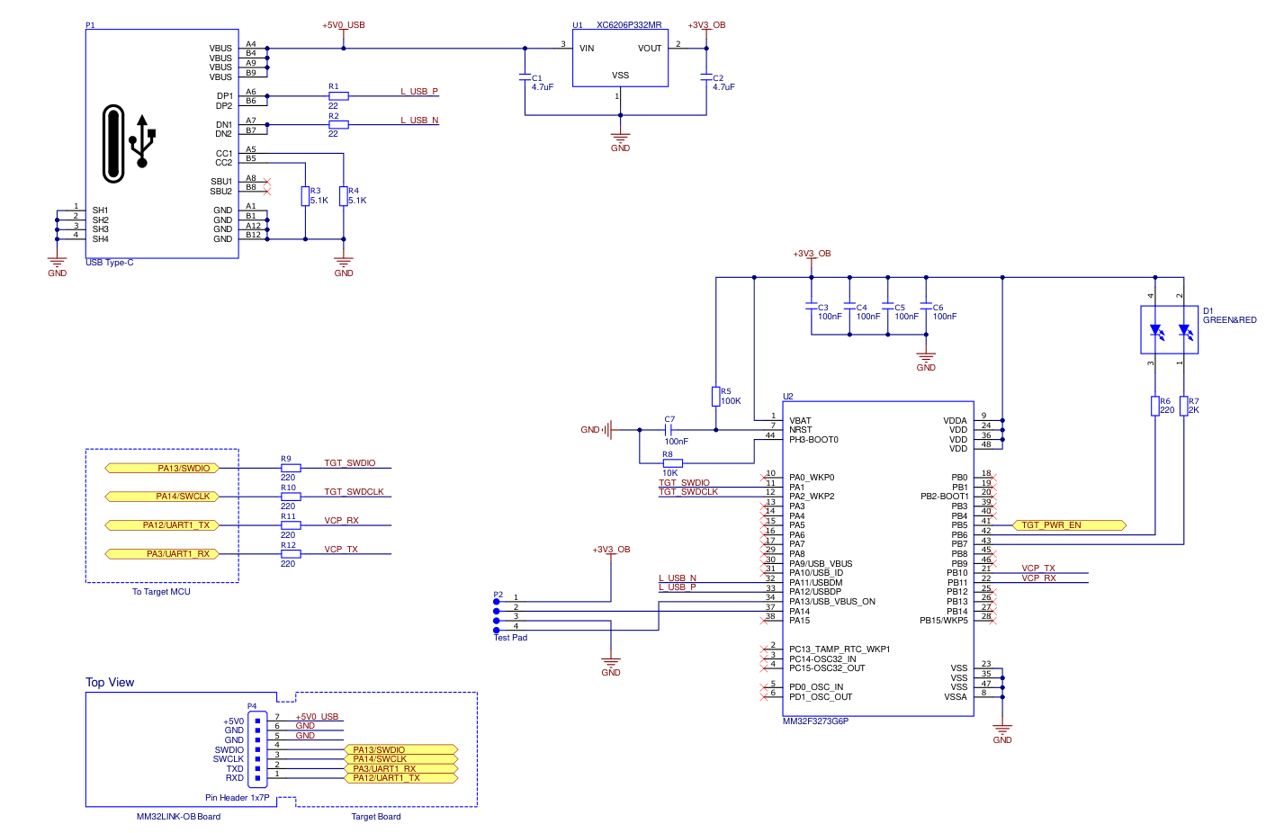 配备DAP下载,有按键和灯,送了排针,两组io能用的18个略少。其他的外设板子上就不多咯,具体参看最下方原理图