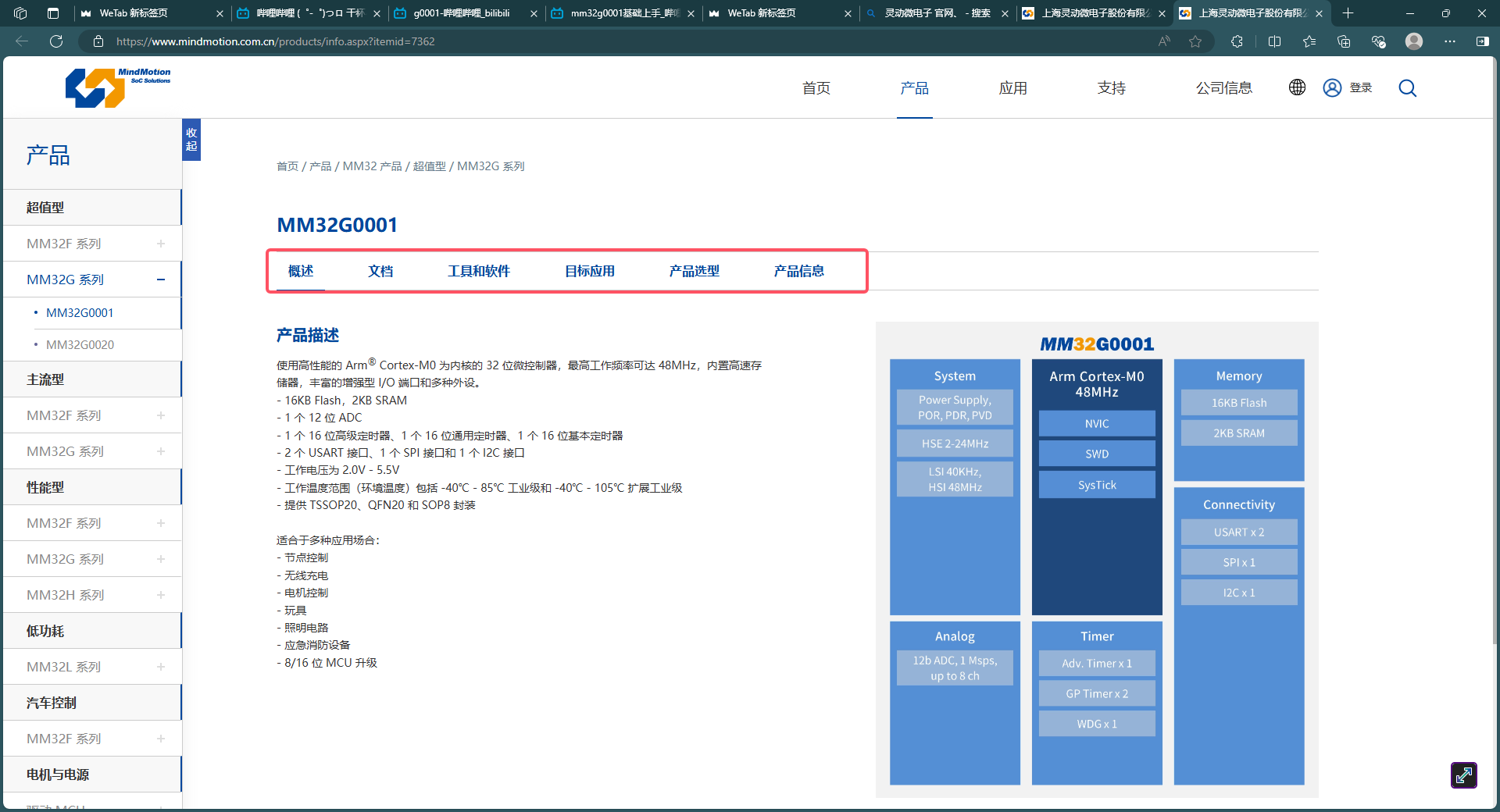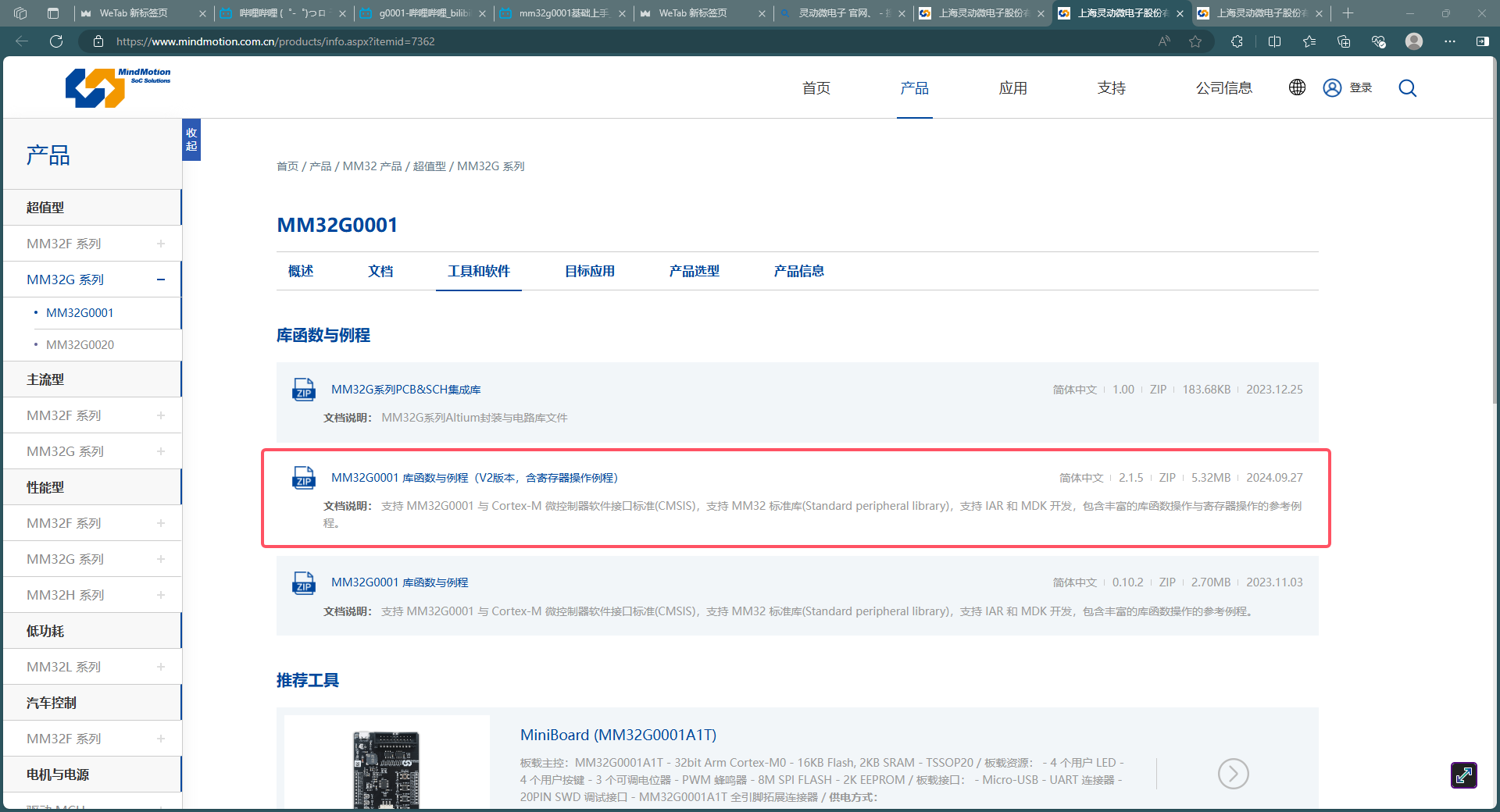 首先进入灵动微电子官网,搜索MM32G0001,即可找到开发所需的软件及资料