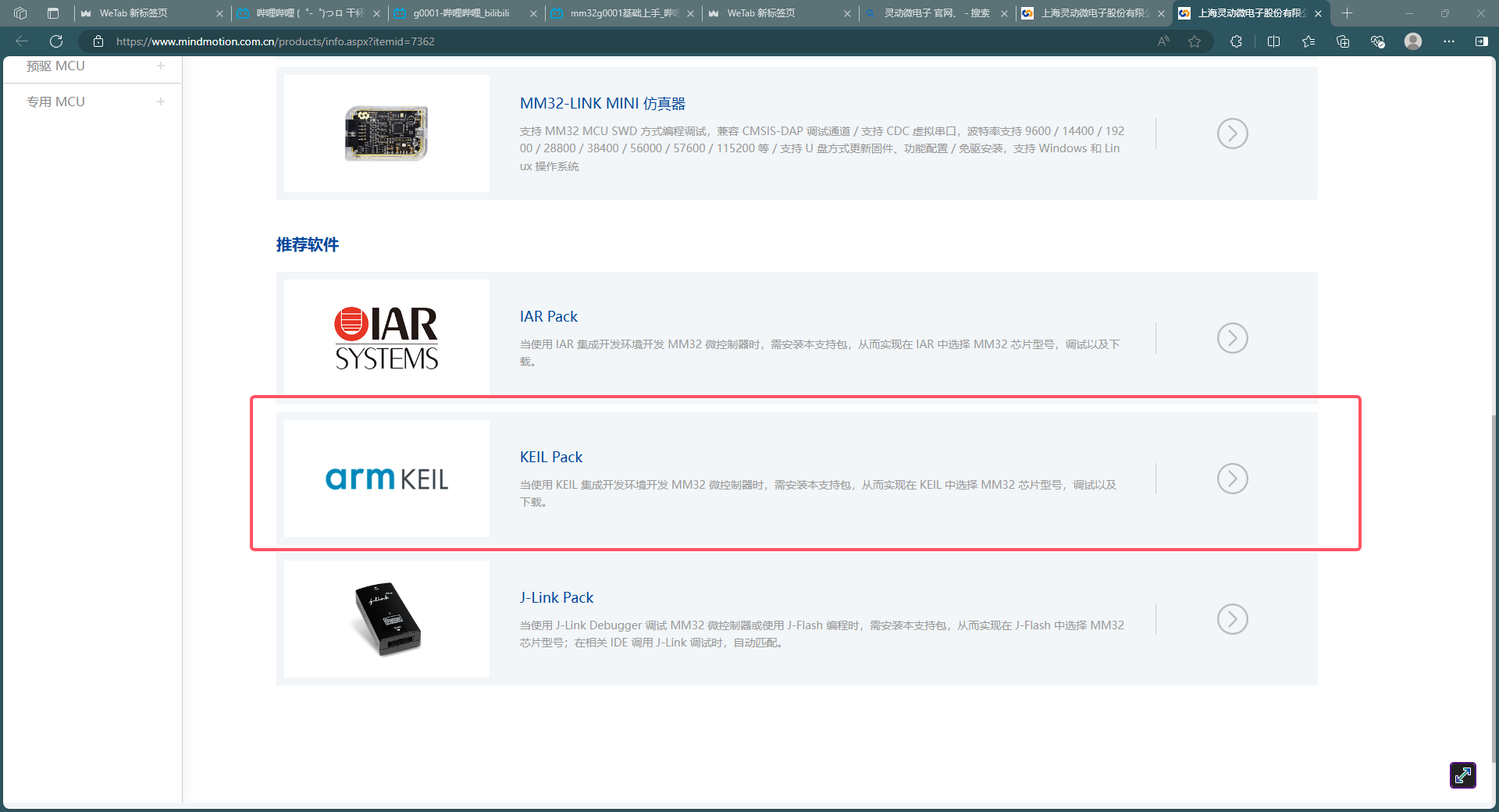 在上述界面中选择工具和软件,即可找到MM32系列的所有芯片包进行下载