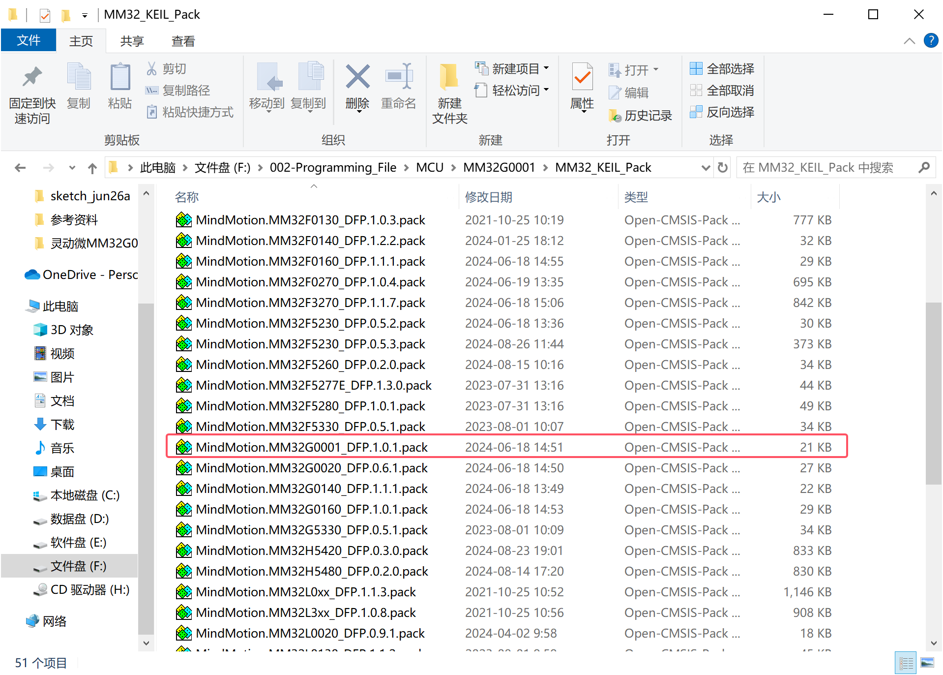 下载完成后,即可看到MM32系列的所有芯片包,找到G0001双击安装即可