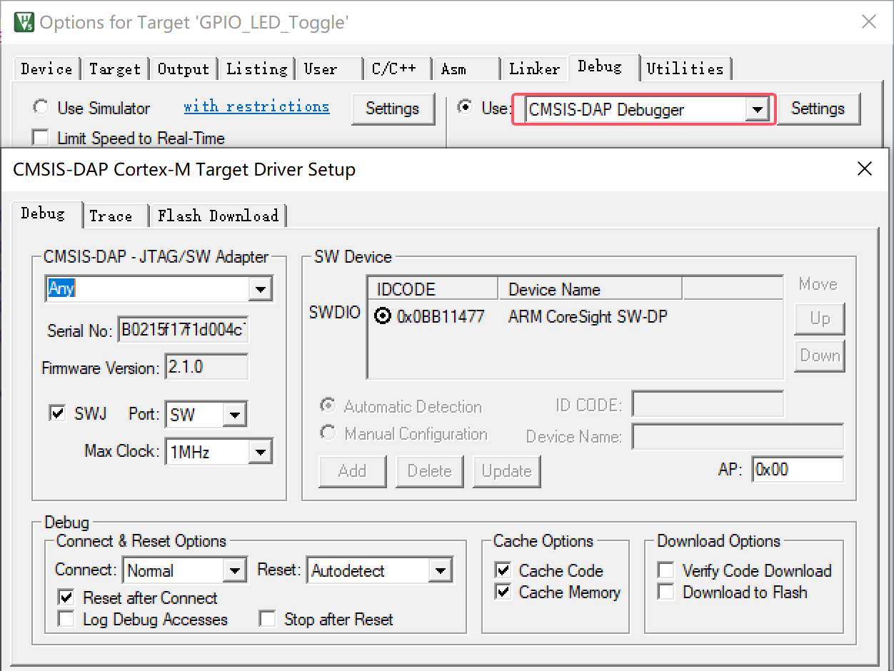 添加完成后,Debug选择DAPLink,直接烧录即可