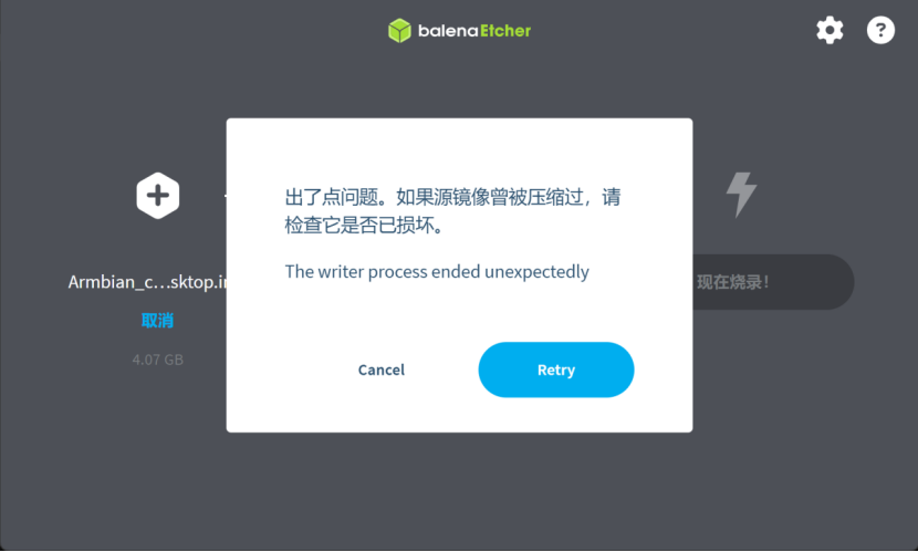经过N次烧录尝试,发现需要解压.img.xz为.img镜像,否则会出现校验失败问题。