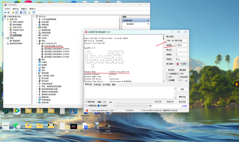 使用串口工具连接好开发板和笔记本USB接口后,使用串口调试软件或者Putty查看启动日志,判断是否正常进入系统。