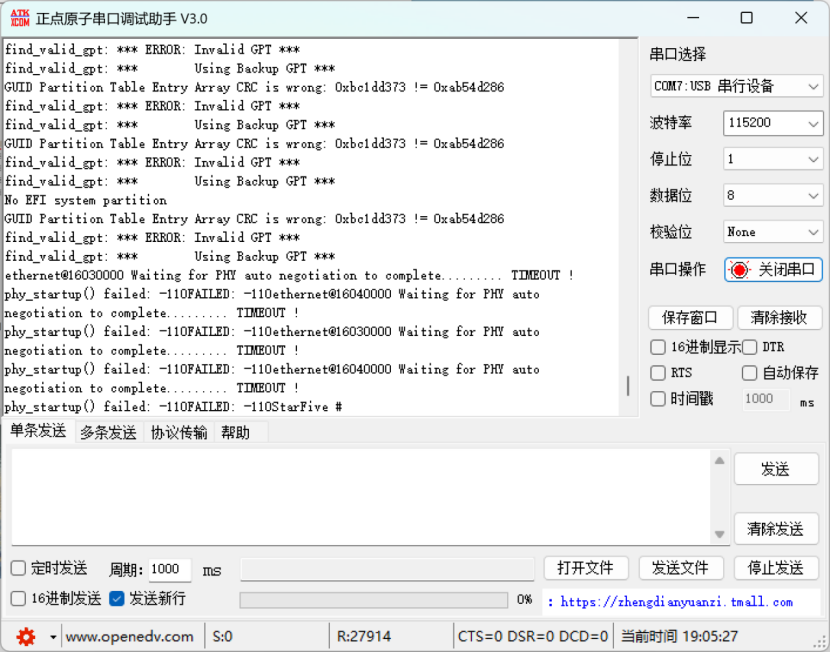 调节启动模式为SPI或者SD卡,可看到以下日志,下面为各系统启动存在问题的日志信息