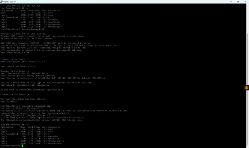 43 root@starfive:~# resize2fs /dev/mmcblk1p4