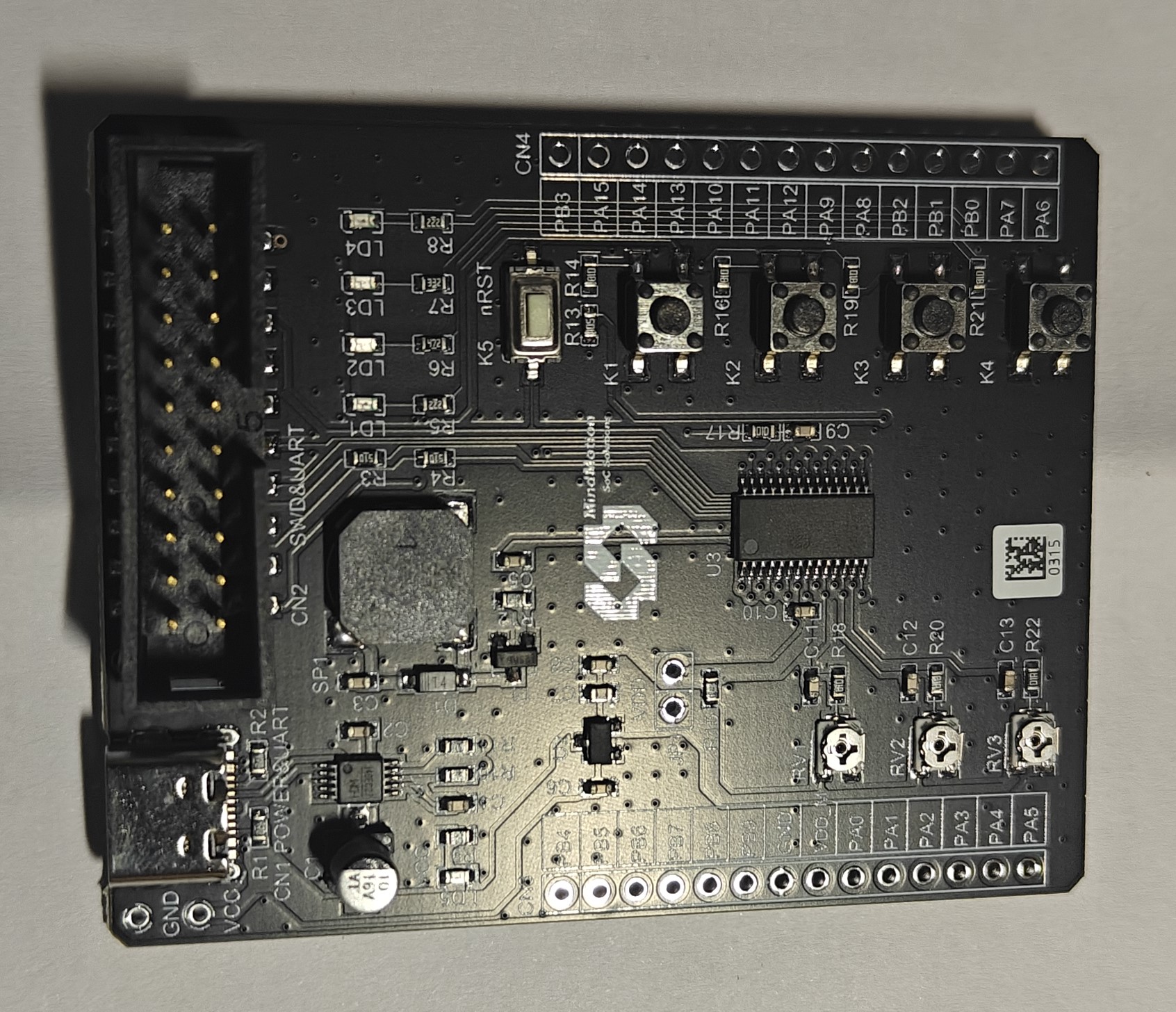 集成了运动控制所需的专用模拟外设,包括12位高精度ADC、2路模拟比较器COMP、2路运算放大器OPAMP,另配备有MC-TIM、硬件除法器HW-Div、DMA控制器等专用资源,以及32KB Flash、4KB SRAM、26个GPIO等基础资源。