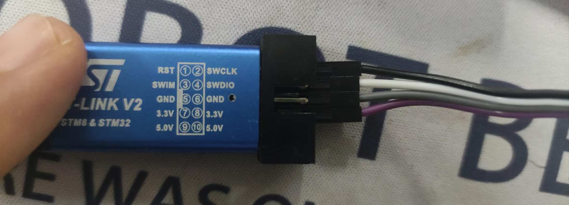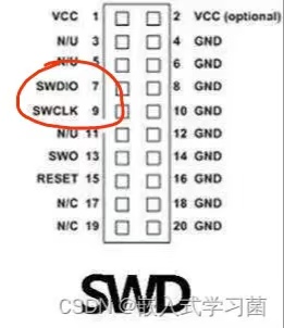 将dio和clk引线连接如图7、9引脚,3.3v供电使用STlink即可