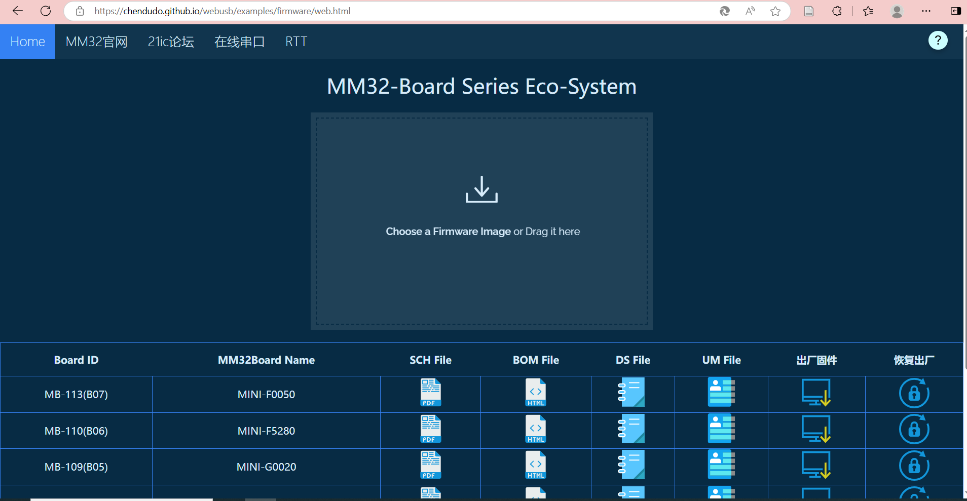 1、在iceasy商城申请界面下面就有一些芯片资料,产品手册、用户手册和keil支持包,直接用type-c线把板子和电脑连起来,里面有个网页也包含很多资料,网页地址是: https://chendudo.github.io/webusb/examples/firmware/web.html